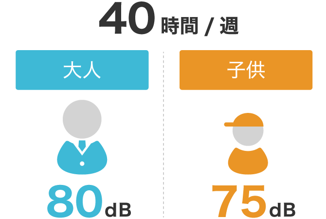 WHOが国際電気通信連合(ITU)と共同で策定し、世界に提示した国際基準によると、聴覚障害にならない安全な音のレベルの目安は、大人で音量80デシベル、子どもは75デシベルをそれぞれ1週間に最大40時間とし、その上でメーカーに対し、利用者がどのレベルの音量をどの程度聴いたかが分かるような機能を音響機器類に付けることなどを提案しています。