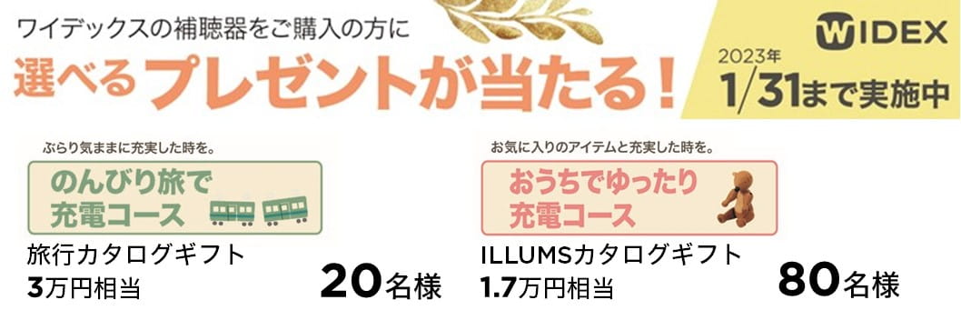 ワイデックスの充電式補聴器をご購入の方から抽選で100名様に素敵な賞品をプレゼントが当たる「ゆく音くる音」キャンペーンが終了いたしました。多数のご応募ありがとうございました。